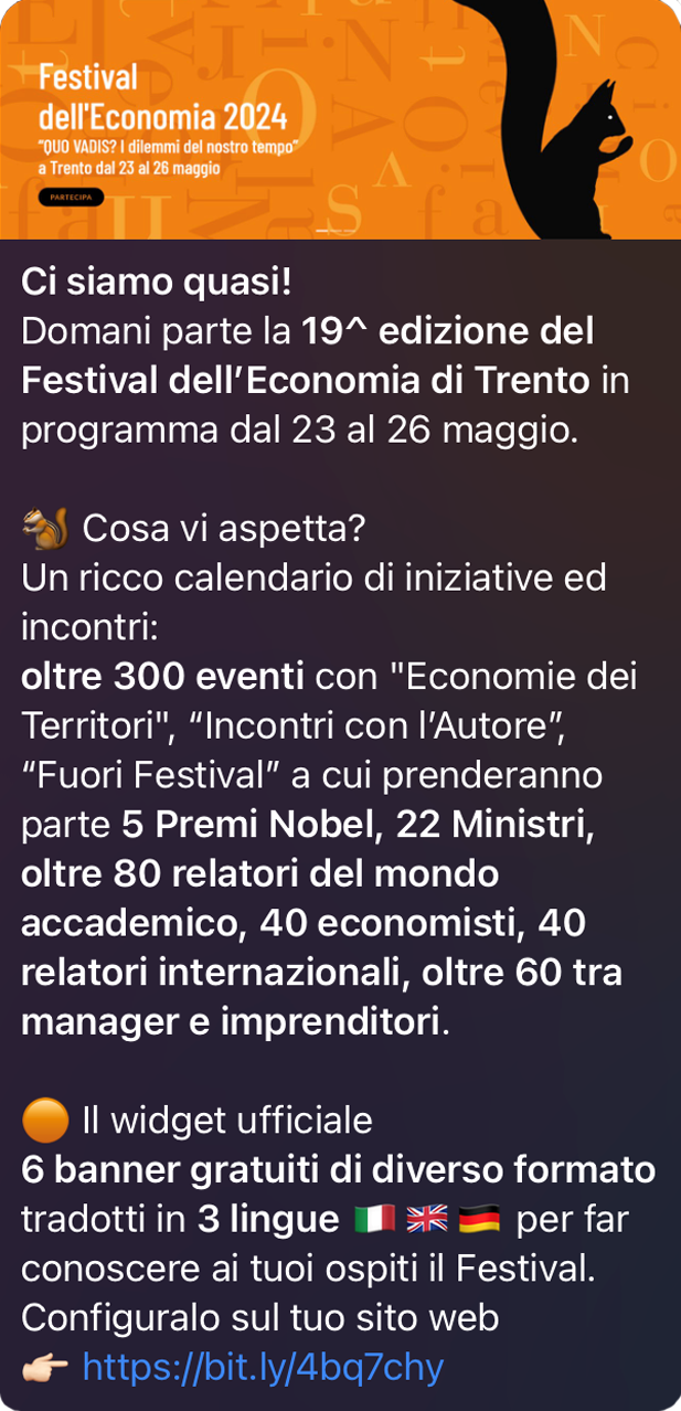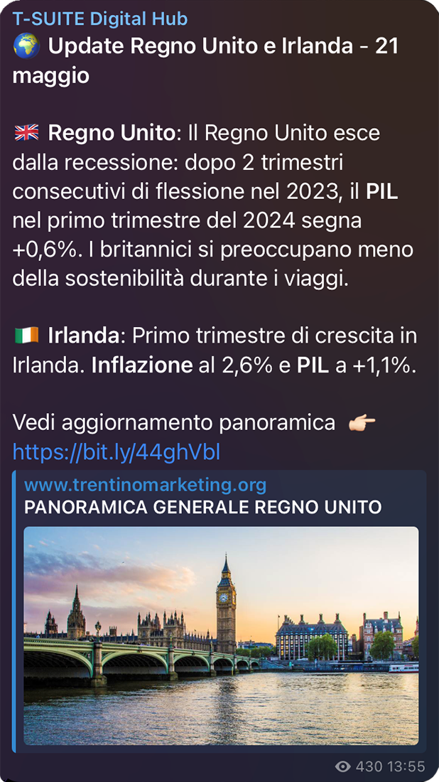 Iscrivendoti al canale è possibile ricevere con cadenza periodica brevi notizie, approfondimenti, documentazione e sintetici report sulle dinamiche del turismo, a livello globale e a livello Trentino.