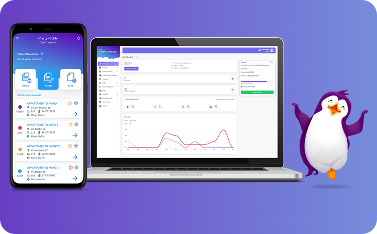 Dal cruscotto web di Wiisy e dall'app dedicata quando sei in movimento, avrai sempre sotto controllo la gestione dei check-in, velocizzando le procedure di accoglienza e lasciando più tempo a te e ai tuoi ospiti.